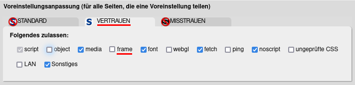 Wer noch konsequenter auch 1-Party iFrames blockieren möchte, könnte NoScript nutzen und Frames auch für "Trusted Sites" blockieren.